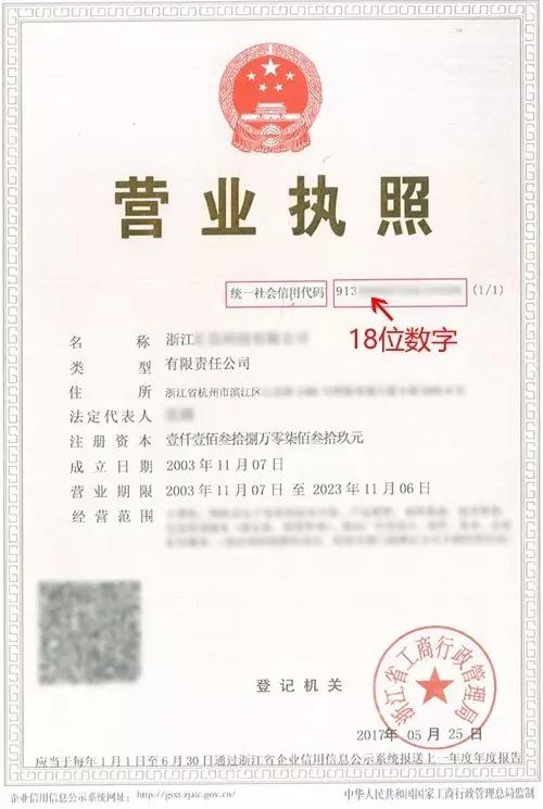 請檢查您企業的營業執照,是否加載了18位統一社會信用代碼?(如下圖)